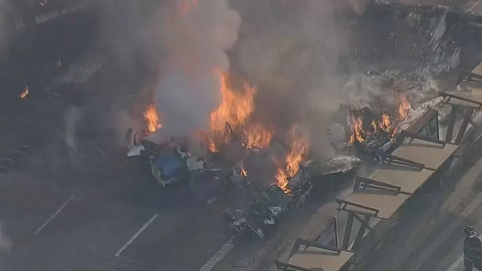 “Teve combustível espalhado pela via. A gente utiliza espuma para controlar os líquidos combustíveis para que essa tragédia não tomasse proporções maiores. A gente ainda não tem informações de quem eram os tripulantes que ocupavam a aeronave”, afirmou.