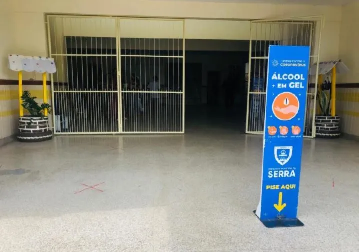 As unidades municipais de ensino da Serra estão recebendo totens de álcool em gel, dispensers de sabonete líquido, termômetros digitais, além de marcação nas carteiras e no piso para garantir o distanciamento, entre outras ações preventivas.