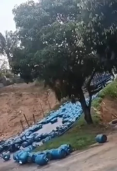 O motorista de um caminhão de gás tomou um susto daqueles. Ele estava subindo uma ladeira quando as botijas de gás caíram da carroceria e rolaram se espalhando pela rua abaixo.