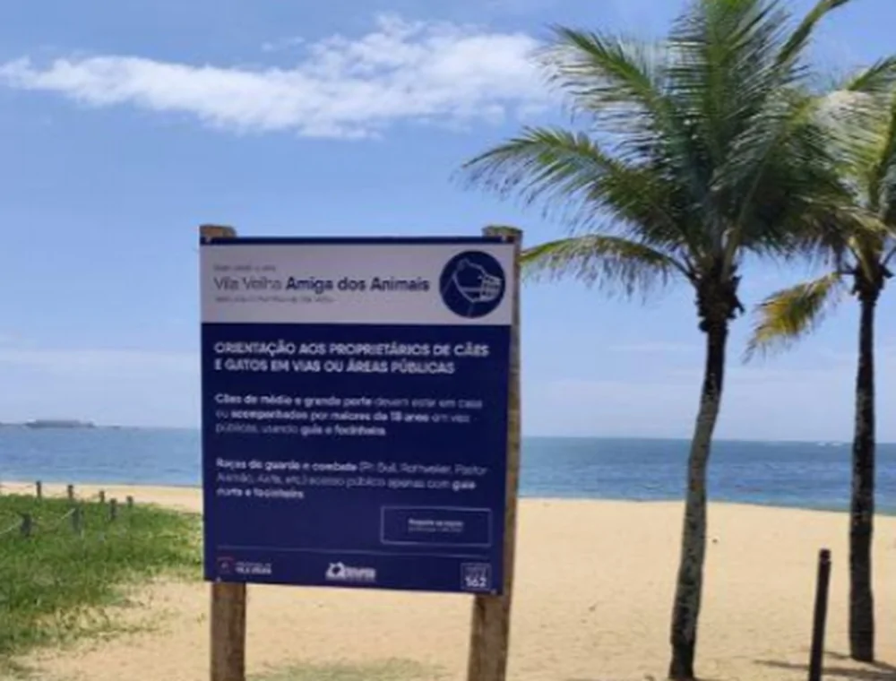 Visando garantir a segurança e a convivência harmoniosa em espaços públicos, a Prefeitura de Vila Velha, por meio do setor de Bem-Estar Animal, da Secretaria de Meio Ambiente, instalou placas informativas na orla das praias da Costa, Itapuã e Itaparica, além do Parque da Prainha. As placas reforçam as orientações previstas na Lei Municipal 6.385/2020 sobre o uso obrigatório de coleira e focinheira para cães de médio e grande porte.