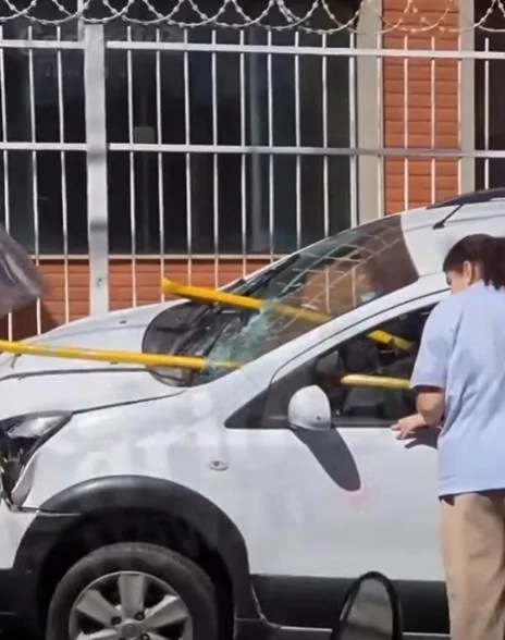 Segundo testemunhas, a mulher perdeu o controle da direção, atropelou um motociclista e colidiu contra a barra de proteção lateral da via. Com o impacto, a barra de ferro atravessou o para-brisa do carro e, por pouco, não atingiu a motorista.
