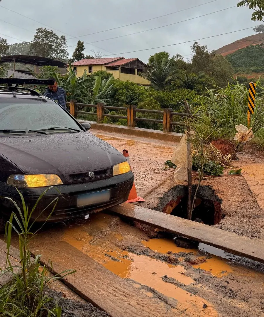 A ponte localizada na Rodovia Coronel Leôncio Vieira (ES-185), que liga Iúna ao distrito de Uberaba, foi totalmente interditada na tarde desta quarta-feira (26) após apresentar danos estruturais provocados pelas chuvas dos últimos dias.
