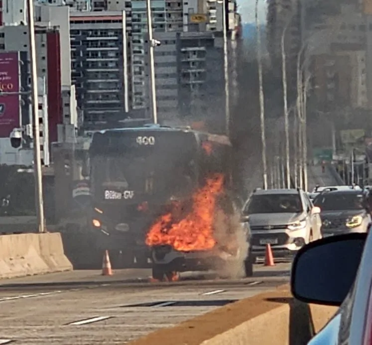 O trânsito precisou ser interrompido temporariamente na tarde desta segunda-feira (16) na Terceira Ponte após um carro pegar fogo. O incidente aconteceu por volta das 16h, no sentido de Vila Velha.