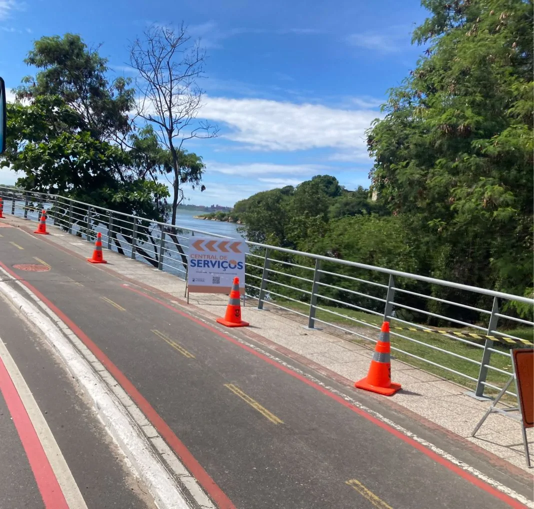 De acordo com o município, a medida de liberar uma faixa para pedestres e ciclistas foi adotada para garantir segurança durante a obra e evitar que pessoas precisem caminhar em locais inadequados.