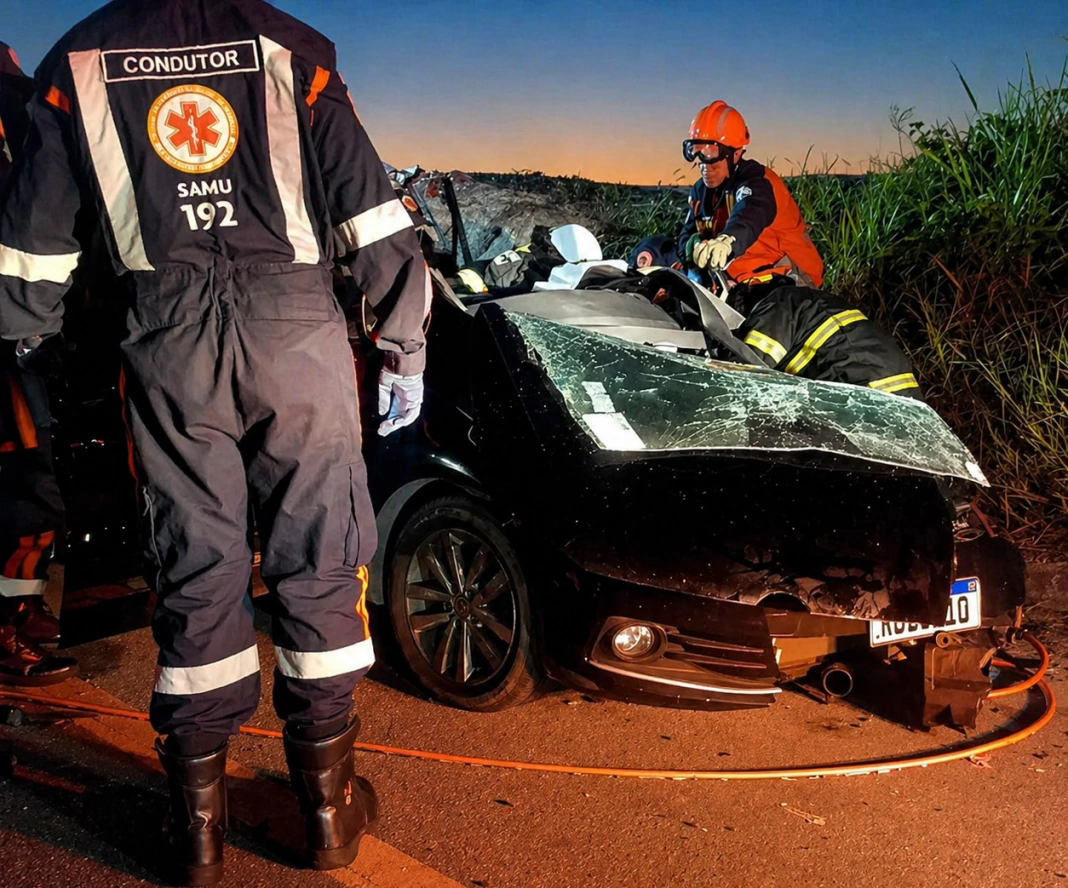 A colisão frontal ocorreu por volta das 5h e envolveu um VW/Fox e um Hyundai/HB20, ambos de cor preta. Segundo informações preliminares, o Fox seguia no sentido Anchieta x Guarapari, com três ocupantes, quando o HB20, que vinha no sentido contrário, teria invadido a contramão, provocando o impacto.