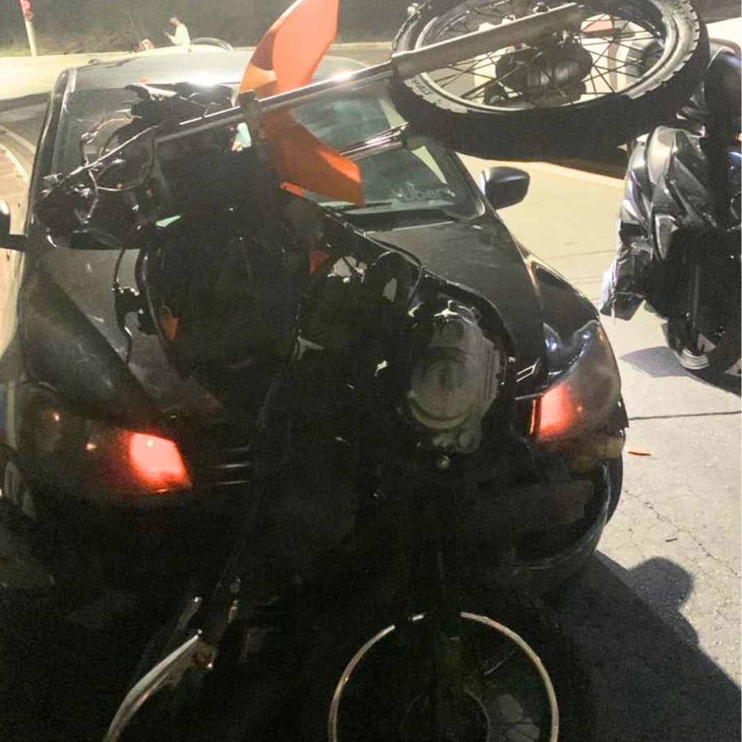 De acordo com a Polícia Militar, um carro estava estacionado na lateral da via, parcialmente sobre a calçada, enquanto um ônibus trafegava ao lado. Nesse momento, a motocicleta teria invadido a contramão e colidido com o coletivo e com o veículo parado.