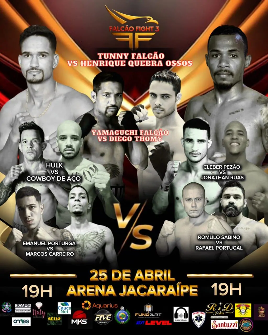 A Arena de Jacaraípe, na Serra, será palco de uma maratona de combates neste sábado (25) com a realização do Falcão Fight 3. O evento começa oficialmente nesta sexta-feira (24), com a pesagem dos atletas profissionais.