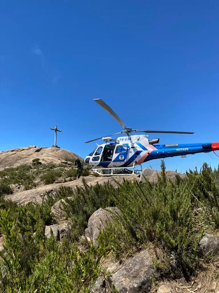 De acordo com o Notaer, as condições meteorológicas estavam favoráveis e conseguimos pousar no topo, bem perto do Pico, para resgatar a vítima e levá-la para as equipes de saúde.