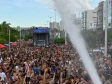 Uma equipe em solo, incluindo profissionais do Serviço de Atendimento Móvel de Urgência, permaneceu de prontidão para prestar os primeiros socorros assim que a vítima fosse retirada da área de risco.