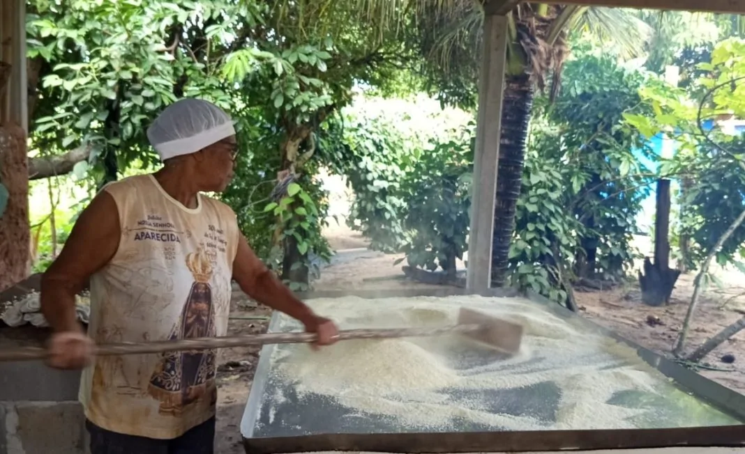 No espaço, a produção é diversa: mandioca, feijão, pimenta-do-reino, corante natural e criação de galinhas. A tradicional Casa de Farinha ainda funciona como símbolo de continuidade. Parte do que é cultivado garante a subsistência da família; o excedente vira renda. Mas esse equilíbrio está cada vez mais ameaçado.