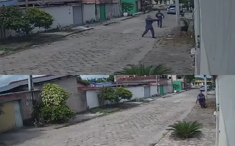 Nas imagens, aparecem três PMs e Carlos Eduardo, que está sentado em uma calçada, algemado, em frente a uma casa. Os outros dois policiais estavam dentro da residência. Um deles, Thafny da Silva Fernandes, sai do local, aparentemente, pulando um muro ou portão. O outro permanece em pé, de frente para a vítima.