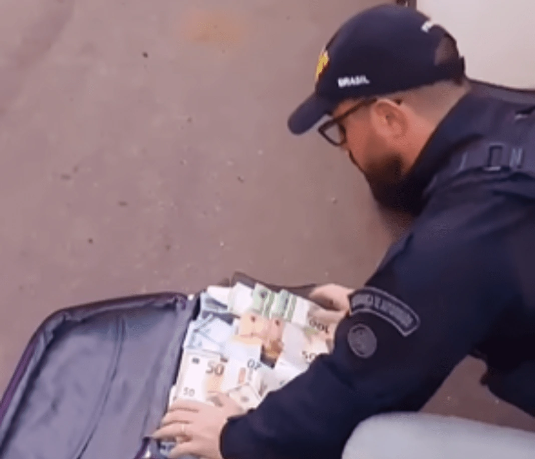 Ao todo, foram contabilizados R$ 763.438 reais, 70.700 euros e 41.940 dólares. Aos policiais, a companheira teria admitido que viajavam ao Uruguai e confirmou que as cédulas pertenciam ao Banco do Brasil.