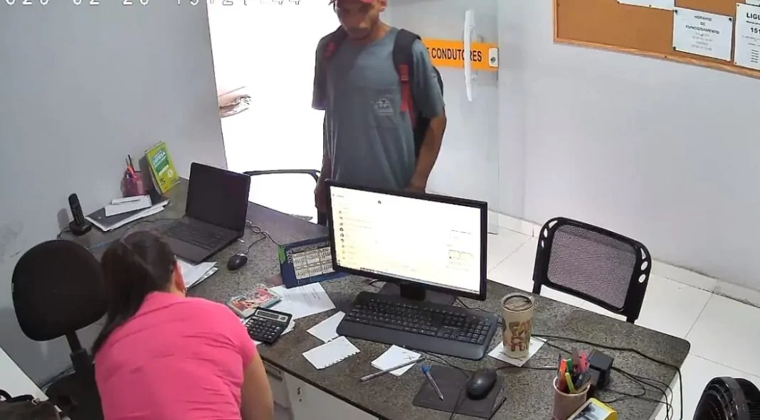 A funcionária abriu gavetas e mostrou que não havia valores no caixa. Durante o assalto, ao perceber que uma pessoa passava pela calçada, o suspeito chegou a disfarçar, fingindo interesse em saber quanto custava tirar a carteira de habilitação. Logo depois, desistiu da abordagem e deixou o local. Antes de fugir, ele trancou a funcionária dentro do estabelecimento.