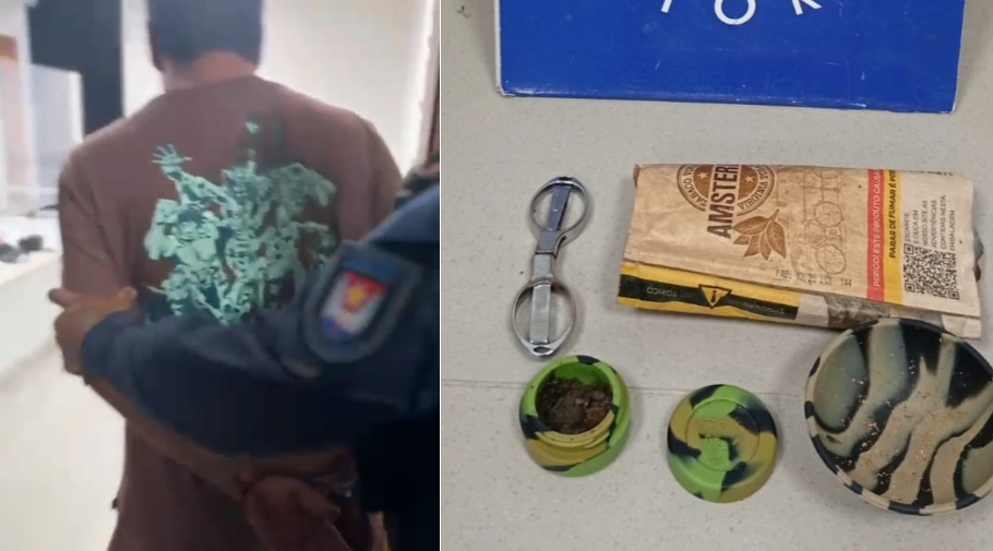 Diante dos sinais de embriaguez, foi feito um registro de constatação e o motorista acabou detido. Durante a verificação dentro do carro, os guardas encontraram uma bolsa térmica com uma garrafa de uísque vazia, além de latas de cerveja e energéticos. Também foram identificados resíduos de maconha e haxixe.