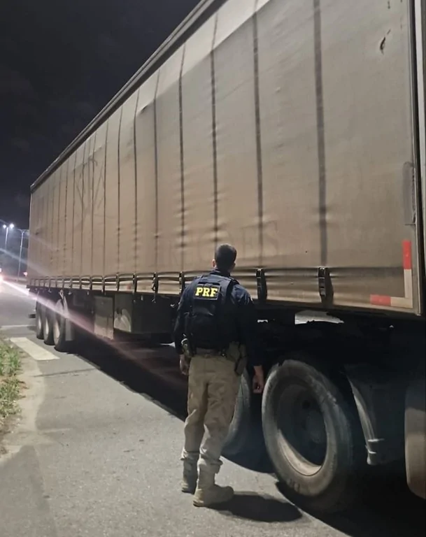 Durante fiscalização com foco no combate à criminalidade no sentido crescente da rodovia, a equipe abordou um conjunto transportador composto pelo cavalo-trator Iveco Stralis, com placas de Santa Catarina, atrelado a um semirreboque, com placas do Rio de Janeiro.